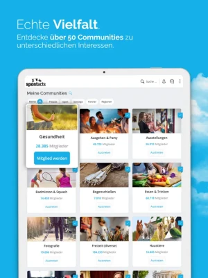 - GEMEINSCHAFTLICH – Gründe Interessengruppen & nutze den Spontacts Live-Chat oder Messenger, um in Kontakt mit anderen Leuten zu bleiben. Plane gemeinsam Events und finde Mitmacher für deine Hobbys und Freizeitaktivitäten.