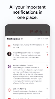 - Receive key notifications about important university events
