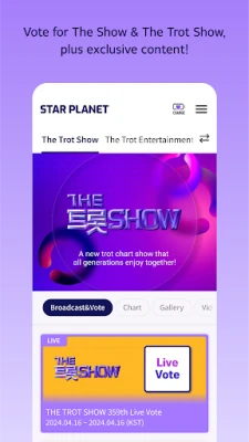 - Vote for your MY STAR on official programs like THE SHOW and THE TROT SHOW!