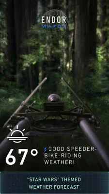 ● Star Wars evrenindeki gezegen ve mekanların orijinal resimleri ve paralaks efektleriyle süslü Star Wars temalı hava durumu ve beş günlük hava tahminlerini alın