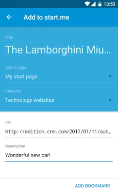 This app lets you access your start.me pages in a mobile friendly manner. All you bookmarks and widgets are easily accessible. And adding new bookmarks and notes is easy: just share whatever link you want to add with the start.me app.