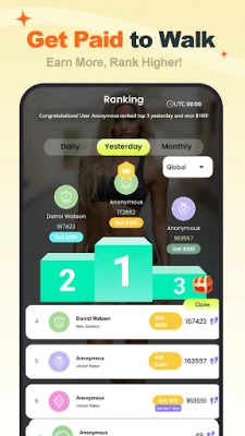 Step Leaderboards: Love competition? Join daily rankings and earn rewards as a top walker.