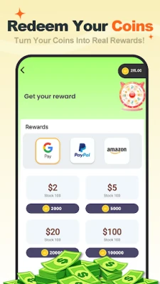 ✔ Fast Payouts — Redeem coins for real rewards like Gpay, PayPal, or Amazon gift cards.