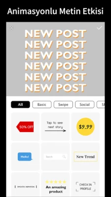 - Metin: Çeşitli hype yazı tipleri, benzersiz kelime tasarımları ve 50'den fazla metin animasyonuyla metin yazın.