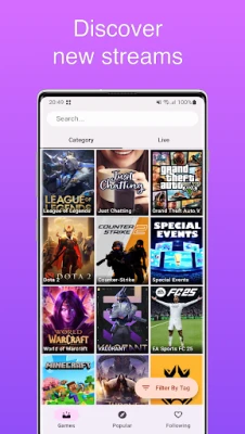Top Streams: Easily discover and follow top Twitch streamers. Find new and exciting content with just a few taps.