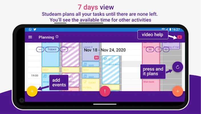 This virtual agenda is not just a study organization app: it implements a simple method to help you improve your time management and study habits, developed by Task & Time (taskntime.org). The daily use of this App introduces the student to a healthy and effective work discipline that reduces procrastination and improves learning and academic results. And most importantly: it will make you feel better! Controlling your time reduces anxiety and stress.