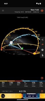 - 3B Pusula - Dünya üzerindeki cihazın kerteriz açısını ve yönünü, Güneş ve Ay'ın konumlarını ve durumlarını temsil eden bir pusula üzerinde gösteren 3 boyutlu projeksiyonudur.