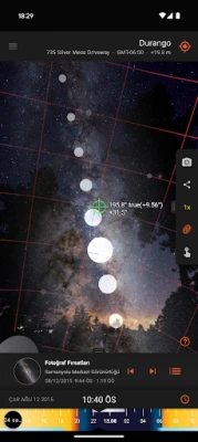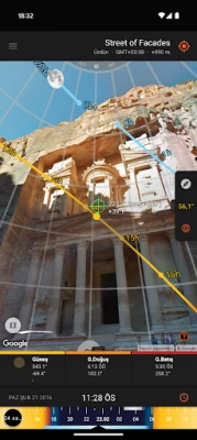 - Güneş ve Ay yollarının artırılmış gerçeklik projeksiyonlarını görüntüleyin, güneş veya ayın gökyüzündeki belirli bir konumunun zamanını saptayın.