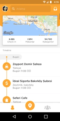 • Bu lifelogging'in kolaylaştırılmış halidir. Her check-in yapışında kişisel haritana bir iğne ekleyeceğiz, bu sayede ziyaret ettiğin mekanları görebileceksin. Gelecekte kendine yardımcı olmak için check-in'lerine fotoğraf veya bir not ekle, hatıraların daha da güzelleşsin.