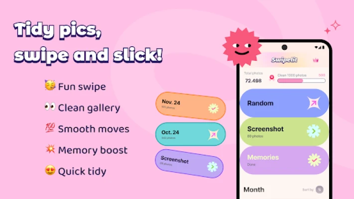 This isn’t just another cleaner app—this is a swipe-to-slay party. Left for trash, right for treasure. Swipe your way through that messy gallery and clean it all up—photos, screenshots, and videos. It’s like Marie Kondo for your camera roll but ✨fun✨.