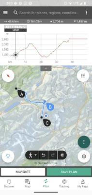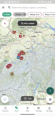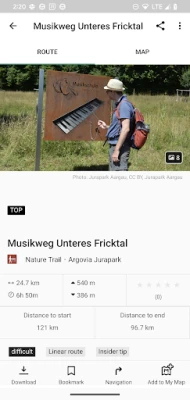 You can save the official maps and itineraries on your device to use them offline, which is especially useful in remote areas with poor network coverage. All itineraries feature an elevation profile, description, GPX-Track and photos.