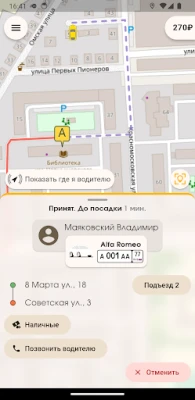 1. Цена поездки в приложении. 2. Видите где водитель. 3. Оставляйте отзывы о поездке. Вы можете отказаться от водителя, который Вам не понравился. 4. История поездок. 5. Быстрое оформление заказа.