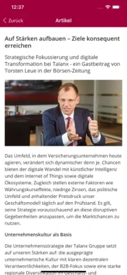 The Talanx4U App gives you a good overview of what is happening within the Talanx Group - up-to-date and mobile. Talanx4U provides news, background information and facts / figures from the world of Talanx - as well as information on career opportunities with one of the major European insurance groups. A glance at the Talanx financial calendar keeps you updated on all upcoming events. Talanx is Germany's third-largest and one of the major European insurance groups by premium income. The Hannover-based Group is active in more than 150 countries. Talanx operates as a multi-brand provider with a focus on B2B insurance. With its brand HDI, which has a tradition of more than one hundred years, Talanx operates both in Germany and abroad delivering insurance solutions to retail customers and industrial clients. Further brands of the Talanx Group include Hannover Re, one of the world's leading reinsurers, the bancassurance specialists neue leben insurers, PB insurers and TARGO insurers, the polish insurer WARTA as well as Ampega, a funds provider and asset manager.