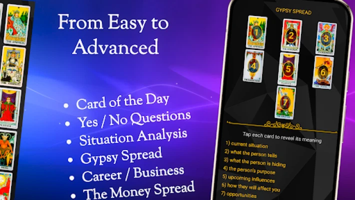 Install for free and guess the oracle Tarot cards online - for relationships, for the future, for a person, for love - do the ruminations to know predictions of the future, understand the situation, or just ask the question from the card of the day — Yes or No Tarot questions.