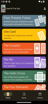 🌟 Daily Tarot Readings: Get personalized guidance every day. 🃏 Card Spreads: Choose from classic spreads or create your own. 📖 In-Depth Card Meanings: Learn the upright and reversed meanings of every card. 🔮 Journaling: Save your readings and track your journey.