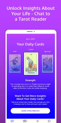 ✓ Free tarot readings - get the first 3 minutes FREE every time you contact a new psychic, in any category