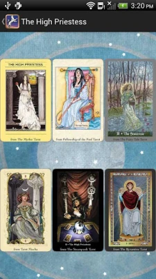 The Tarot Sampler shares every feature of The Fool’s Dog apps. You can read Tarot cards, journal your readings, and share on social media. Interpreting your readings is a breeze: just tap on the card to see the meaning. Or, you can use the Tarot Sampler to browse The Fool’s Dog Tarot offerings, and see which decks make your heart sing!