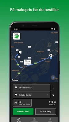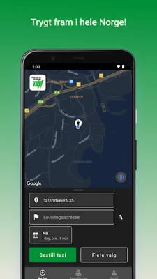 Du får automatisk henteposisjon basert på hvor du er, og du kan lagre favorittadresser som hjem, jobb eller andre steder du ofte besøker. Med sanntidssporing og varsler kan du følge med på hvor bilen din befinner seg, og du kan betale trygt og kontantfritt med kort. Hvis du registrerer kortet i appen, vil kvitteringen sendes automatisk til deg etter turen.