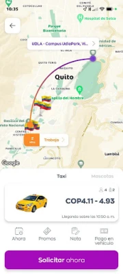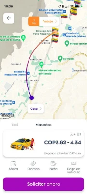 • Solicitar un taxi. • Cancelar tus solicitudes. • Editar tu dirección de destino y mover el punto de recogida sobre el mapa. • Confirmación del vehículo que ira por ti. • Rastrear el vehículo en el mapa mientras llega por ti. • Recibir notificaciones en tiempo real. • Agregar favoritos. • Calificar tu servicio