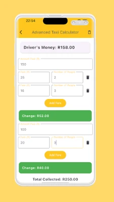 Get Results: Instantly see the total fare, the driver’s money, and the correct change to give back.