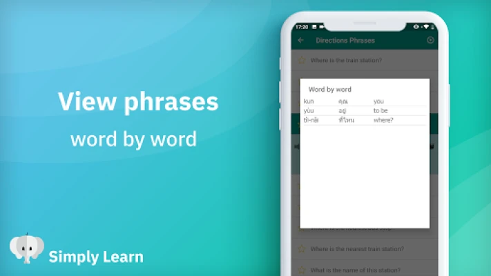 Ayrıntılı görünümü, her Tayca cümle ve kelime onların Türkçe çevirilerini kelime kelime öğrenmenize olanak verir🔠.