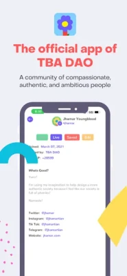 This is the official communication app for TBA DAO. When designing this app with members of TBA DAO our mission was simple; we wanted to design experiences that will improve the lack of compassion, authenticity, and ambition in our society.