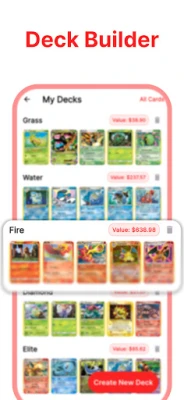 - Stay updated with TCG market changes and organize your collection by sets or value.