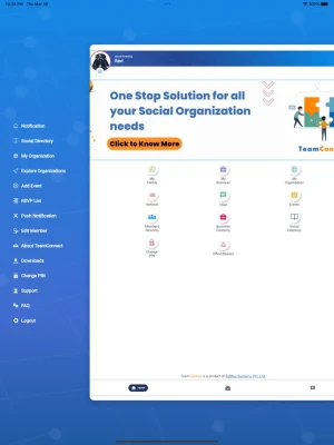 TeamConnect is app social community app. Here users can view upcoming events, community members, give RSVP for events etc.