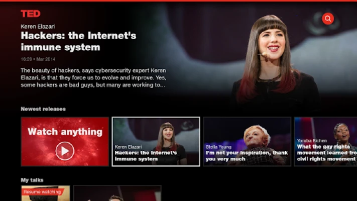 TED uygulamasının yeni ana sayfası her gün güncellenen tavsiye edilen konuşmaları içerir. Üstelik yenilenmiş düzenimizle oynatma listeleri ve konuşmalarda gezinmek artık çok daha kolay.