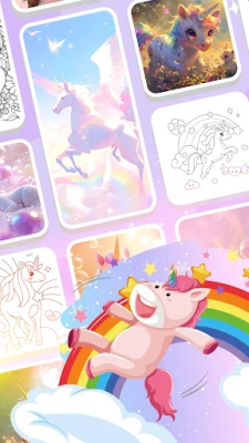 Unicorn Boyama Dünyası, sıradan bir boyama uygulamasından çok daha fazlasıdır—bu, unicorn severler ve sanat tutkunları için bir sığınak.