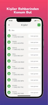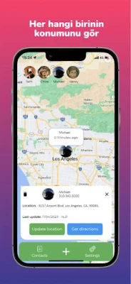 Telefon Takip Uygulamasını kullanarak kişileri telefon numarasına göre arayabilir, numarayı manuel olarak girebilir veya kişi listenize göz atabilirsiniz. Aradığınız kişiyi bulduğunuzda, bir sms isteği gönderebilir ve yerini bir harita üzerinde alabilirsiniz. Bu uygulama aynı zamanda kişiye yol tarifi sağlayacaktır.