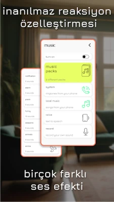🔴 El feneri, komik sesler veya müzik, ses seviyesi ve titreşim ayarları dahil tanıma modlarını özelleştirin.