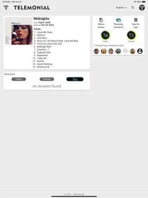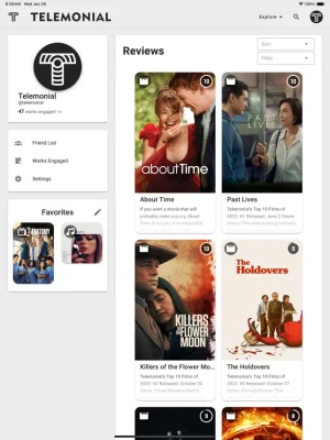 Find friends on Telemonial and see their thoughts on the latest books, movies, TV shows, podcasts, and albums. Telemonial offers a platform to find reviews from personal references and to track all your viewing/reading/listening history.