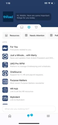 Connect, engage, learn and have a little fun on The Thread – Ardent’s community to stay up to date on what’s important and nice to know from the convenience of an app. Follow your interests, read the latest news or give a kudos. The Thread is a welcoming place where we can find useful information.