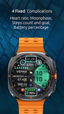 This watch face supports all Wear OS devices with API Level 30+ like Samsung Galaxy Watch 4, Galaxy Watch 5, Galaxy Watch 6, 7, Ultra, Pixel Watch etc.