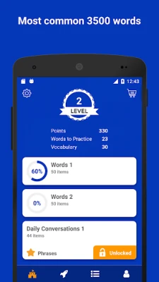 - Yeni kelime öğrenerek, pratik ve tekrar yaparak puan topla. Topladığın puanlarla sık kullanılan cümle kalıplarının ve grupların kilidini aç.
