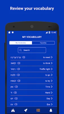 İnteraktif kelime kartları ile İbranice öğren. 3500 kelime, fiiller, resimler, kelimelerin okunuşları ve daha fazlası uygulamada. Sık kullanılan cümle kalıpları, kelime oyunları, listeler. Kelime ezberlemenin en eğlenceli yöntemi. Her seviyeye uygun İbranice kelime öğrenme uygulaması.