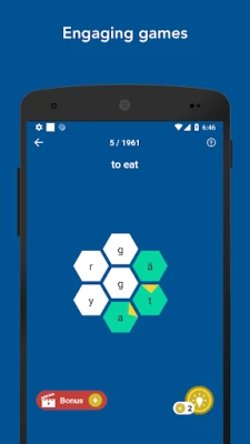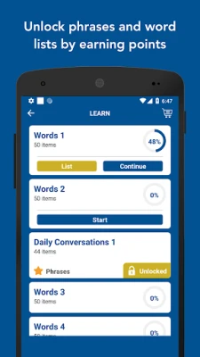 - Yeni kelime öğrenerek, pratik ve tekrar yaparak puan topla. Topladığın puanlarla sık kullanılan cümle kalıplarının ve grupların kilidini aç.