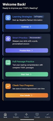 TOEFL Tutor Reading is designed to replace boring textbooks and help you build the skills you need to improve in the reading comprehension section of the TOEFL exam.