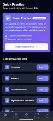 - Interactive learning modules introduce you to the Reading Section and all nine question types