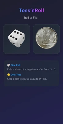 Whether you're settling a friendly debate, playing a board game, or just want a fun way to randomize choices, Toss’nRoll gives you a sleek and simple way to flip a coin or roll dice — anytime, anywhere.