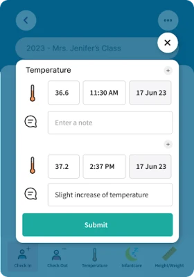 The "Tots and Teddies - For Teachers" app simplifies preschool care for teachers, providing a powerful mobile tool to streamline check-ins, check-outs, record temperatures, heights, weights, and manage essential infant care tasks like bathroom breaks, feeding times, and sleeping schedules. Empower educators with efficient childcare management and enhance classroom productivity using Tots and Teddies - Teachers' app