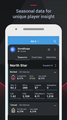 Tracker Network app brings unique insights and stats to every game we support, including Valorant, R6 Siege, League of Legends, Apex Legends.