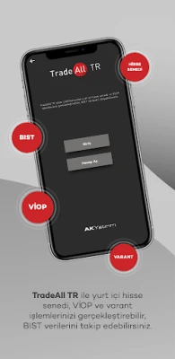 İleri nesil teknoloji ile geliştirilen TradeAll uygulaması fiyat izleme, işlem yapabilme, yatırım danışmanlığı kapsamında algoritma, ileri seviye işlem fonksiyonları ve Ak Yatırım özel rapor içerikleri ile öne çıkıyor.