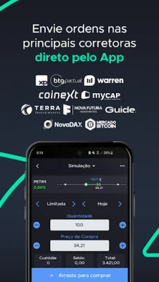 👉 Envio de ordens diretamente pelo App ao conectar sua conta com uma de nossas corretoras parceiras: XP Investimentos, Guide, BTG Pactual, Warren, MyCAP, Genial, Nova Futura, Mirae, Terra, NovaDAX, Foxbit, Binance, Coinext, Mercado Bitcoin e muito mais!