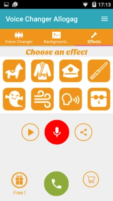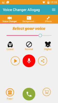 Tired of voice changers that give you random exemples of voice changing and don't show how YOUR voice will sound before calling ? With Voice Changer Allogag precisely and manually adjust voice changing effects and preview the result on YOUR voice. Imitate a lot of different voices thanks to our manual voice changing system. Because we think YOU should choose the perfect voice, we don't offer pre-selected voices.