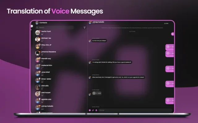 Our application radically transforms the way businesses collaborate, negotiate, and trade on an international scale, overcoming language barriers with sophisticated instant translation technology.