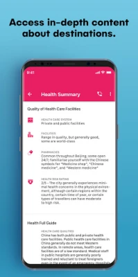 - Imagine Insurance Section: Imagine Insurance portal - Assistance: Emergency button for access to assistance 24/7 - Destination Content: Destination demographics, culture, embassies - Medical Information: Travel health conditions & medications with search tool - Security: Real-time alerts plus safety information including crime, climate, and other hazards - Tools: Weather, Currency Converter