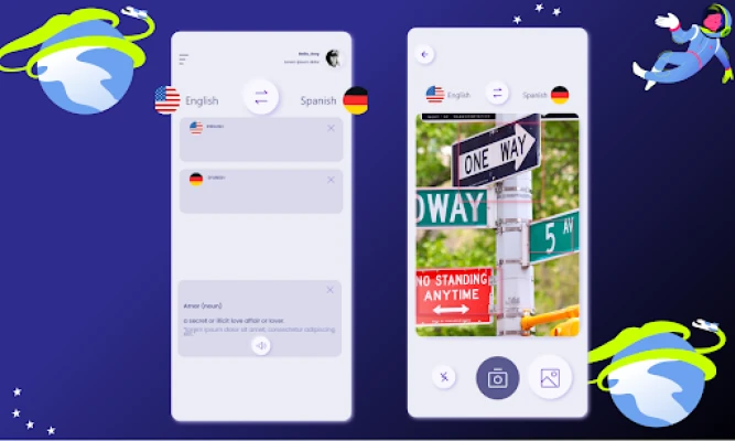 Photo & Camera Translation – Through Image translation feature, you can translate photos. The features allows you to open a photo or use camera to take a photo. You can translate any photo from English to other languages.