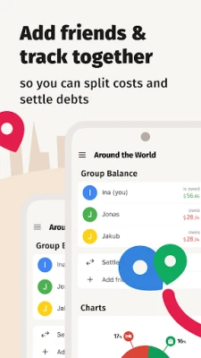 Share your trip with your partner or a group of friends and keep track of who owes whom. Split bills, check your balances and settle debts all within TravelSpend.